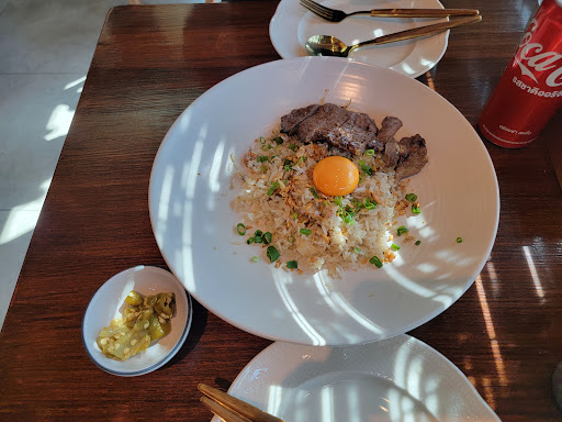 We ended up waiting over an hour, by which time they had run out of most foods. When asked what of the remaining items they'd recommend, we were simply told all out. We shared one dish, and it was nothing special, definitely not worth the hassle we went through. Beef was tough, rice mediocre. The best part was the pickled pepper side followed...