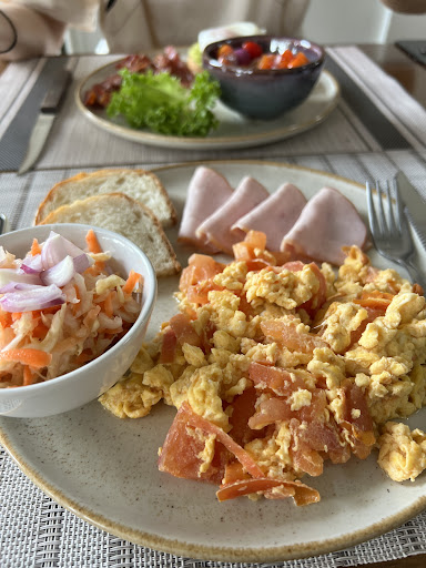 Read moreThere is really no need to open a restaurant with this kind of cooking skills. A small plate of tasteless scrambled eggs with tomatoes for 200 baht, euphemistically called Ukrainian breakfast. . . The price of the meal is higher than that of most cafes in Chiang Mai, but it only comes with two slices of extremely thin bread. How much is the bread worth? After we were seated, we were given water Which is good, but only one-third of the cup. We were the only customers at that time, but neither waiter gave us a refill.. After spending more than 400 baht, I still had to go to 711 to buy some food. Three stars for the sake of Ukraine, but the restaurant only...