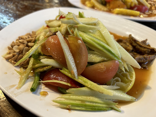 Read moreBRING MOSQUITO REBELLENT!! (especially if dining in the evening) The restaurant is open air - (no AC) with seating consisting of beautiful free form wood tables and chairs, surrounded by greenery. They specialize in Som Tam - northern Thai salads - and offer a large variety of delicious fragrant and refreshing salads. Our favorites were the corn salad and the fermented rice vermicelli. Do order some of their delicious grilled meat to go with the veg - the PORK NECK!! The meat was tender, smokey and the star of the meal.
