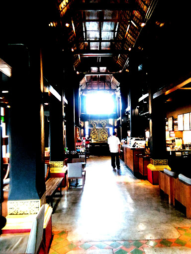 Read moreOld Thai Building (maybe a temple) converted into Starbucks coffee shop. Dark Teak beams and rafters highlight the teak furniture inside with plenty of outside views through big gass windows. Staff were polite and efficient.My Ham Cheese Ciabati was microwaved and the bread still floury. The Apple Pie was barely warm and no side of cream or icecream was offered.Lemon tea and Smoothie was excellent. Forget the food, get a drink and relax and experience a touch of old Siam. Lovely spot to watch the...