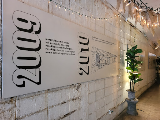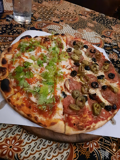 As an American traveling in Thailand, this place was a very nice pizza joint, comparible to some of the best traditional crispy crust pizza I’ve ever had. The pizza was excellent! The staff were very friendly and accommodating, but not overbearing. The owner even dropped by to see how my food was and to ask if I would enjoy some romantic music being played while I was on a date, and even set up some very nice mood lights at my table as the evening set in and it got dark outside. Everyone was very friendly and the atmosphere is very nice, although a bit hot. But that’s Thailand’s fault, not the restaurant. I appreciated that they had extra floor fans set out all over the restaurant and even repositioned it towards my table the moment I sat down so that I could enjoy the breeze. The whole restaurant smelled incredible! I had a large personal pizza with Bacon, Red onions, and Pepperoni. It wasn’t on the menu but they had no problems letting me order what I wanted. I tried my date’s food which was a Carbonara, and while I wasn’t all that impressed by it, it was still good. I will say that the pizza is outstanding though. The one fault I had with the restaurant was that I didn’t even know it was there from the street, but it’s just the location is situation only on the second floor. They have banners all over the balcony, so it was probably my own fault I didn’t see it since I didn’t look up. It would benefit from a large sign at ground level indicating it was there, but that’s my only suggestion. Also did I mention the price was very reasonable as well? I think our entire meal was around ฿500. Not too bad for a great experience and some great pizza. 5/5...