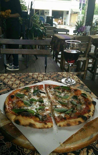 This is really good pizza. You can see the whole process from the thin crust dough being hand tossed dressed and slid into that brick pizza oven. My friend I stopped by last week. We split a large 1/2 Wild Boar Sausage and 1/2 Venison Sausage and when it arrived at our table we both had the same look of surprise on our faces. It was finished with some fresh basil leaves and it smelled and looked delicious and it was! With every piece we bit into, we said this is awesome. There is a wide assortment of toppings to suit anyone's taste. The prices are very good. We both ordered a beer and our total bill was B379. A steal for a very good taste treat. The setting opens between two buildings and you can sit inside or out. It is a casual atmosphere that is open late. It is on Thapae Road between Chang Klan Road and Thapae soi 1. Use the Siam Commercial Bank at the corner as a marker. I'm going...