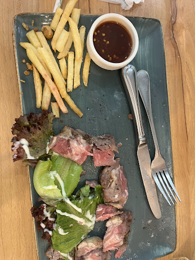 Read moreThe place was okay, but its very noisy. We had to wait at least 20 minutes before someone noticed we wanted to order. After we ordered we had to wait another 30 minutes for only 1 dish to arrive. The fries were cold and the steak had a lot of fat in it. We ordered another portion of fries. We also ordered more, wich we never got. The only good thing was a pizza. Prices were affordable but much for the portion you get. The portion fries we got to make up for the cold fries was just the same temperature. We canceled out orders and went out. And we still had to pay 1050 bath. Ridiculous. Not...