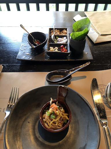 Read moreI had high hopes for this restaurant but was a bit let down mostly due to a number of very easily fixable issues with the waitstaff. Presentation was creative and attractive at first, but was diminished by a few common factors throughout the dining experience. The 2-3 waitresses serving me were very nice. However, I found myself calling for their attention multiple times. I was there around 5:30pm, as a single diner so it wasn’t that busy. Unfortunately, what I observed was them being much more attentive to the older more “affluent” in appearance couples on a date. Which was probably the most discouraging thing about this place. I don’t ever like to feel like I’m out of place when I go to eat somewhere. I’m paying the same money as everyone else and in this case because of the bad direction from the waitstaff I probably ordered just as much food, if not more as a table for two would. Which brings me to my next issue. The food portions were very large and are meant for sharing, which was mentioned prior, but when I placed my order I asked if it would be enough and even requested a little direction from my waitress to make sure I wouldn’t make this exact mistake. They replied with absolute certainty that it was enough and didn’t give any indication that it would be too much. When the food arrived I was a bit surprised as an 85kg, 185cm man, that they would’ve thought I’d be able to finish everything. Not a big deal, I asked them to box the rest. Next, knowing how full I was, one of the waitresses asked me if I wanted desert, so I said sure let me take a look at the menu. I ordered a single desert that came out very unexpectedly, again, as a very large array of different Thai sweets along with some coconut ice cream. This desert portion was enormous, just take a look at the pictures. All I’m saying is that some direction from my waitresses would’ve prevented me from ordering enough food for three people. As for the actual food, it wasn’t bad at all, but not great, and surely not worth the price. Oh, and to end the experience I of course had to ask for my bill which was then followed by my waitress asking me to leave because there were other reservations coming. Again, this was mentioned to me, but if the staff was a bit better at doing their jobs I would’ve been out of there much earlier. Overall, not worth the money or time to check this place out. Also, swarming with...