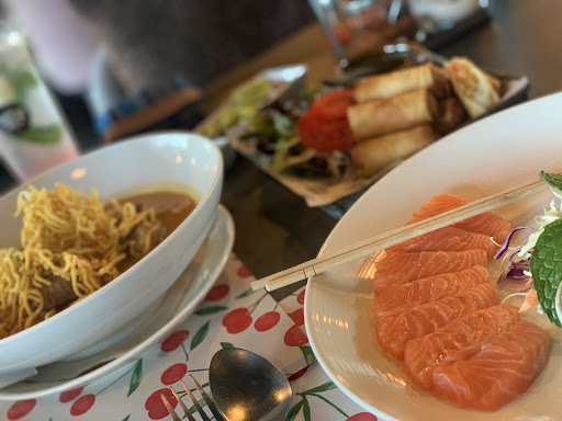 The menu offers a variety of Thai dishes ranging from traditional to local northern specialties. In addition to these offerings, they also have sushi, noodles, and western offering such as pizza and pasta. They also offer a variety of both alcoholic and non-alcoholic beverages!