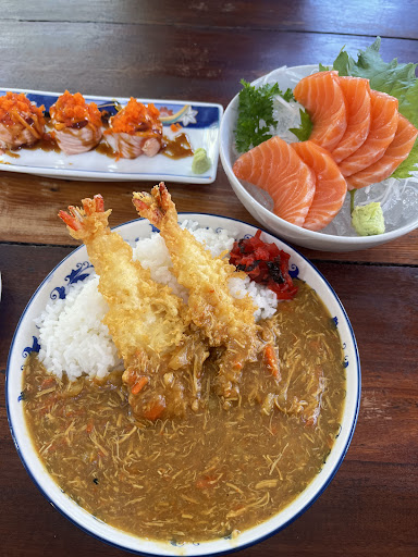 A cozy and affordable Japanese restaurant with great lunch deals. I had the salmon set (189) and the fried shrimp curry rice (99). The shrimp was crispy on the outside and tender inside, and the curry mixed with rice was super satisfying. The salmon was fresh and silky, and my friend’s sushi also looked delicious.