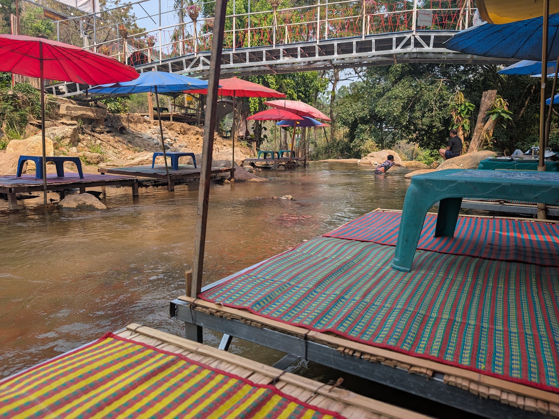 Read moreThe food was pretty good and they bring it out relatively quick in comparison to other restaurants here. Sitting beside the river is nice on a hot day, and you can request a candle if it starts getting dark before you've finished your meal. The ants are huge, so bring a little brush for the floor if you plan on spending a while. They don't have sugar free soda, and the liter bottles are 50thb. The rice is soft, so be aware if you prefer a Japanese style. This place is NOT wheelchair accessible, and I wouldn't suggest it for cane users visiting alone. I did not visit the restrooms. We had two 3kg dogs with us that lay by the river and were also satisfied with...