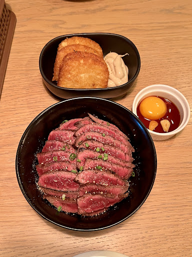 We ordered two dishes: the soy sauce egg and the beef rice bowl, as shown in the photo. The flavors were perfectly balanced. The soy sauce for the egg was incredible — they somehow prepared it in a way that made me want to drink it by the spoonful! And when poured over the beef rice, it was simply amazing. The egg itself was also rich and beautifully soft. We came back several times — that’s how good it was!