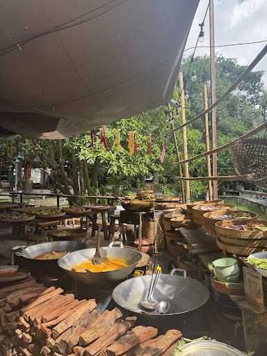 The whole setup is rustic and charming, giving you that kampung-style, back-to-basics dining experience. But just to share honestly—the only downside is their water mist cooling system. While it helps with the heat, the mist is quite heavy and ends up getting on you and even your food. Some might not find that very hygienic.