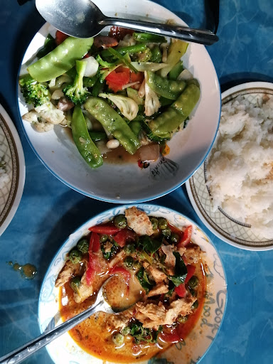 Amazing food! Came as a recommendation from the owner of the hotel opposite, where we were staying. It's also recommended in some books as well, and for good reason. We came expecting something quick and easy, but we ended up with some spectacular food! We ordered the stir fry chicken with cashews, as well as a Thai green curry. Two portions of rice too. We also ordered some drinks and everything came to 410 THB, which is incredible value, considering how tasty it all is. The local cat is heavily pregnant too so wanted tonnes of attention and this just added to the vibe. The staff were lovely too and the service was super quick. You can see the owner cooking the food from where you're sitting and all the ingredients are clearly fresh. The Thai green curry is enormous so please keep this in mind if you're not looking for a big meal, or at least have it without rice. If that's the only meal you want, then you might need 3 portions of rice to equate to the volume of the curry. Such a nice place and we're so thankful for the recommendations - we'll definitely be back again if...