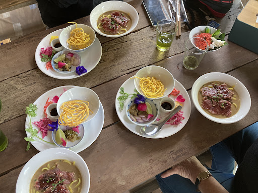 Read moreWhere to start? Everything about this restaurant is a rich experience! It can be a little hard to see from the outside, but when you step inside, it really does feel like you are stepping into a Khao Soi house with a long tradition. Not only delicious, but the food is so beautifully presented. A lot of care really goes into everything. Beef Khao Soi can be rare to find. Theirs was delicious! The beef just fell apart. I think it had been stewed overnight. I'm normally not a dessert eater. But the owner, Nat, talked us into it (he was incredibly friendly). We were so glad we accepted because it too was delicious and presented like little works of art. As we were leaving we got talking about coffee, which seems to be a side passion here. They make their own blend. The barista, (named Ban?) made us espresso and it was easily the best espresso I have had in my life. Somehow sweet, despite not being sweetened. Food, atmosphere, staff, all worthy of 5-stars! This is now on my list of top spots in Chiang Rai to...