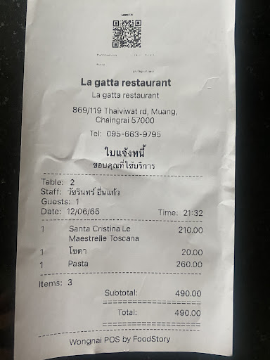I have eaten at La Gatta on 4 occasions over the last 10 days and have found the selection and quality of the food to be excellent. I have eaten at all the 5 star rated restaurants in Chiang Rai and, as you may deduce from my repeated visits, I find that La Gatta is one of the best overall.