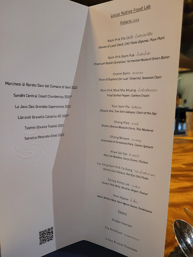 Read moreDinner and a show! Chef @kong.cei presents each course with a little bit of the history of the ingredients and processes with deep, Northern Thai cultural references, historical food preparation processes and combinations of ingredients that are extraordinary, both intellectually and sensually! So not only is this an exceptional meal that evolves daily and changes with the season, but a seminar - a learning experience on many levels. The first six courses are modern interpretations of Thai cuisine with a wrap up at the end with the traditional. An overall meal design that gives you some dishes that challenge convention, but land you in comfort and security at the end of the narrative arc. And the wine pairing, with such an unusual set of flavors would be a task for even the best Soms - but the connections created here are elegant, subtle and amplifying. It is really worth doing the wine flight! And finally - the digestif! Another strong recommendation to go for! We had cacao spirit with samples of deep, dark chocolate, which in the words of the Chef, was a talkshow in your mouth between the flavors and the textures and the astringency of the spirit. Could not recommend...