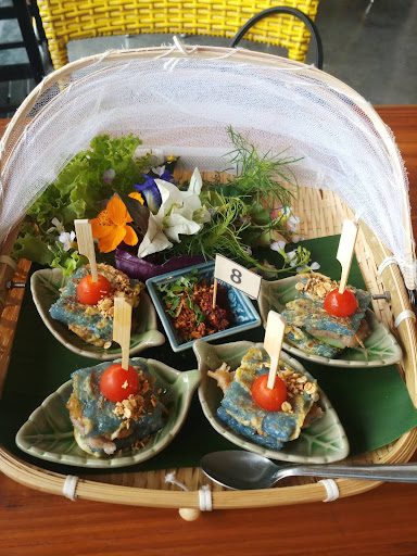 Read moreA Chiang Rai MUST VISIT!!! Absolutely stunning Northern Thai fusion cuisine with organic ingredients. Beautifully presented with flowers and artistry. Everything is delicious- my favourites include the hanglae noodles, eggs with herbs, mian kham, fish and basil. It is an open air restaurant with fans only but by a waterway so not too hot. It was raining today and was lovely inside the seating area. There is lots of parking out the front and by the temple next door. There are sometimes art exhibitions too. The staff speak English and checked multiple times to make sure we were satisfied. It’s a fantastic experience and perfect for groups too who want an authentic but modern take on local northern food. The sparkling herb drink was excellent and the fresh cacao...