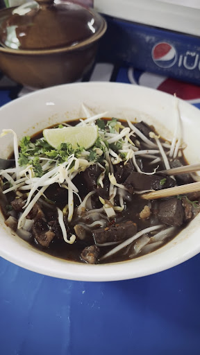 Read moreThis is Northern Style noodle. It's thick soup contain blood and meat with beansprous. Choose between pork or beef soup. Normal dish is 35 THB and large dish is 40THB. Eat with pickles and smoked dried chili flakes. Drinking water is free (self service) or you can order drinks from cafe close by. They also serve sticky rice that cooked in pork blood (15THB) which is another authentic northern style dish to try. They close at 15.00 (3pm) but usually sold out before that...