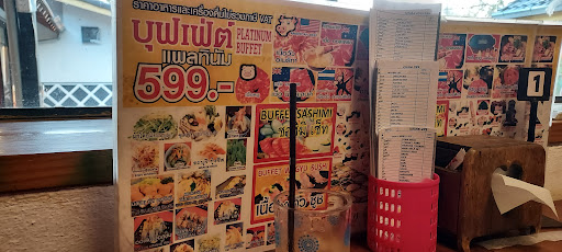 Read moreร้านอยู่แถวสนามบินเชียงรายครับ ตัวร้านตกแต่งและสร้างแบบญี่ปุ่นจ๋าเลยครับ ตกแต่งได้อย่างสวยงาม ทั้งกลางวัน และตอนเย็น รวมถึงกลางคืน สถานที่กว้างขวางมากครับ ถ่ายรูปสวย ที่นั่งค่อนข้างเป็นส่วนตัวครับ มีที่นั่งหลายๆแบบ มีวิวสวน บุฟเฟต์มีหลายราคาครับ ที่มีทั้ง เนื้อหมู เนื้อวัว ปลาดิบ ให้เลือก มีแบบชาบู สุกี้ยากี้ หรือมีแบบปิ้ง เมนูมีให้เลือกหลากหลาย มีทั้งสั่งเป็นจานและแบบบุฟเฟต์ จากการสอบถามทางร้าน บุฟเฟต์มีเวลา 3ชั่วโมงครับ ร้านเปิดสิบเอ็ดโมงถึงห้าทุ่ม อาหารอร่อยครับ ควรสั่งพร้อมกันทีละหลายๆ เมนู อาหารจะได้มาพร้อมกัน ไม่ขาดช่วงครับ มีน้ำจิ้มหลายแบบให้เลือก อาหารทอด ข้าวปั้นหลากหลาย ปลาดิบมีแซลมอน ปลาทูน่า ปูอัด ซาบะ ไข่ม้วน โดยรวมแล้วเหมาะมารับประทานกับครอบครัว สามารถใช้เวลาได้อย่างเต็มที่ กับอาหารที่อร่อย...