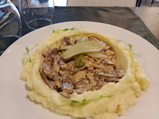 The beef strogonof tasted fine, but I was surprised to have a strogonof in a Russian owned establishment that was not made the authentic way. It was made with cooking cream, again, instead of sour cream. The quality of the beef was fine, but it needs a bit more attention when cleaning it because it had a few pieces of gristle. Again, it tasted like the chef is allergic to salt, and I had to season it again. The mashed potatoes were so bland by the way. Didn't taste any butter, any milk or cream, and again, lacked salt.