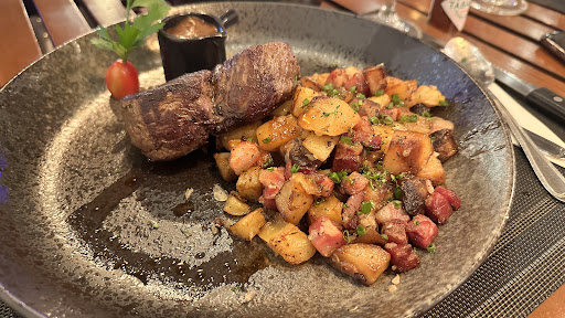 We ordered the the tenderloin & country potatoes ๐ฅ along with ribeye and mashed potatoes ๐ฅ plus the chocolate mousse (no whip cream was served with it like mentioned on here as selection) the mouse very rich and creamy Crรจme brรปlรฉe ๐ฎ was also ordered but very very full after the meal