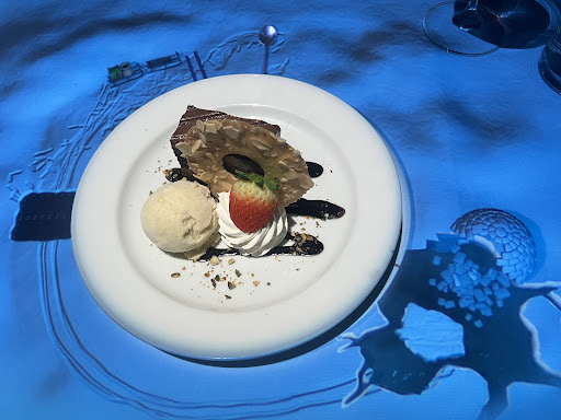 My burrata was completely dry and hard. Couldn’t even finish it (and I really love burrata) The fish soup wasn’t good my food was cold during the main course (Potato + cooked/grilled vegetables) only good thing was the meat that was alright the chocolate cake tasted like a dry desert you get when flying.