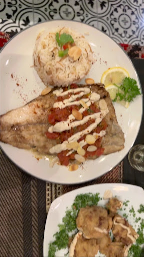 Hummus - classic and delicious Tabbouleh - crispy and citrusy The cauliflower- my all time fav Mixed Grill - excellent with the side fried meat filled bread Sea Bass fish ๐ and rice ๐ .. outstanding Om Ali - dessert- yummy cause it wasnโt too sweet Yoghurt and chickpeas dish was really different The dip with the pomegranate molasses was spectacular