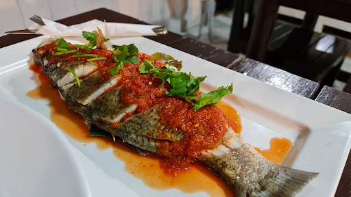 Had a steamed seabass, crispy noodle-wrapped prawn, a tom yum goong and a chicken pineapple fried rice and two drinks for little over 800 baht.