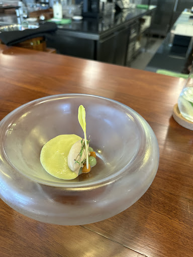 From there, we were guided to our table for an 18-course tasting menu. Each dish was perfect in size and bold in flavor. The chef, with a great sense of storytelling, took us on a journey through his past and a vision of the future. Every course was like a chapter in his narrative. It was surprising, creative, and well-balanced.