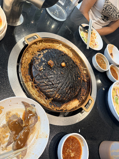คิวไม่นานมาก ไปรอ3คิว ไปช่วงบ่าย มีการจัดการคิวดี แนะนำให้สั่งอาหารก่อนระหว่างรอ พอถึงคิวก็ไปนั่งที่โต๊ะ โต๊ะค่อนข้างมีคราบมันๆเราเข้าใจแหละว่าลูกค้าเยอะ จานชามช้อนทุกอย่างดูเก่าๆ จากที่กินๆมาสาขาอื่นไม่เป็นแบบนี้นะ เราสั่งชุดMember (หมู)และรีฟิวเครื่องดื่ม พนักงานเปิดเตา เตาทองเหลืองมีสีดำๆติดข้างเตากระจุดนึง น่าจะล้างไม่ออก ในใจคือแบบคุ่นเคืองใจ😠 อาหารทยอยมาเสิร์ฟ เริ่มการปรุงน้ำจิ้ม ปรุงแบบตามใจชอบ เราชอบกินน้ำจิ้มบาบีก้อนมากๆๆๆ ย่างหมูสไลด์ เบค่อน ไก่เติมน้ำซุป โรยกระหล่ำฝอยลงเตา กินตามปกติ กินไปสักพัก เครื่องดื่มยังไม่มา เรียกพนักงานขอเครื่องดื่มคนที่1(รอสักครู่นะคะ) สักพักผ่านไป ยกมือเรียกพนักงานคนที่2(เครื่องดื่มถึงมา) ในใจคือเริ่มคุ้นเคืองใจมากขึ้น😡 เรากินเซ็ตแรกหมด ยังไม่จุใจหลังจากไม่ได้กินมา3เดือนเต็มๆ เรายกมือเรียกน้องพนักงานสั่งชุดหมูหมักซอสมิโซะ1ถาด (เอาให้พุงแตกไปเลย) รอ รอ รอ รอ อาหารก็ยังไม่มาเสิร์ฟ เรียกพนักงานมาถามออเดอร์ที่สั่งไป พนักบอกสักครู่นะคะเดี๋ยวตามออเดอร์ให้ค่ะ ในใจคือแบบคุ่นเคืองใจแรงสุด🤬 คิดในใจว่า..ฉันจะคอมเพลน ทุกอย่างมันไม่โอ ลูกค้าเยอะแต่พนักงานน้อย มันดูวุ่นวายมาก