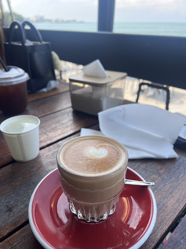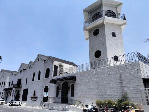 A chic seaside restaurant with Mediterranean vibes and architecture that sits on the gentle hillside slope near the foot of Khao Sam Mook. You can dine al fresco in setting sun to enjoy a great 180-degree view of Bangsaen sea 🌊 in front of you or go for indoor air-conditioned dining (best in the hot daytime). Red Temp café is in the same area too. Honestly speaking, this place is very picturesque & Instagrammable, and besides, it's still new. The taste of food (both Western & Thai as well as seafood), in general, is good and there is a good selection of both local and imported beers in addition to wines and other alcoholic drinks. Prices are rather reasonable in my opinion. The parking is available along the road that runs in front of it and around nearby Khao Sam Mook area, which is a natural home to wild rhesus monkeys. So, you know, you may run into these small agile guests chilling out on your cars as well.😉 Expect a huge crowd and parking difficulty during...