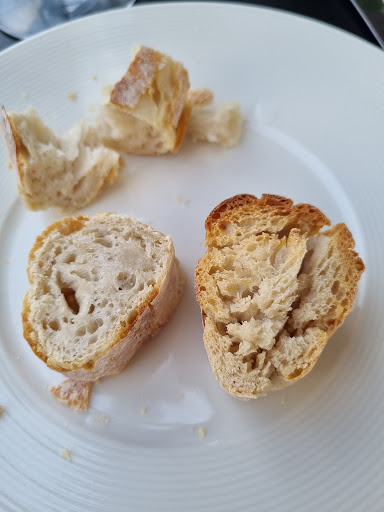 The bread was not cooked, dough still uncooked in the middle of the baguette, also the baguette served seemed be previously used as the end was missing and some parts were toasted as you can see in the photo.
