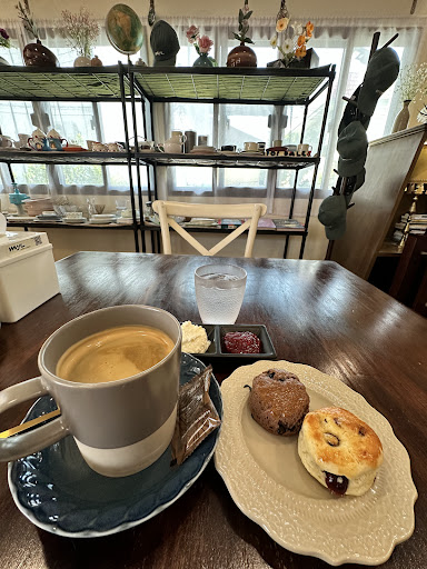 Dessert: Scones: cranberry and chocolate serves with whipped butter and homemade strawberry jam. Proper scone. Lightly dense and crumbles evenly. Pairs well with the Thai/Lao Hot Americano