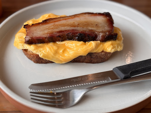 Read moreHatten uns eigentlich auf das Frühstück dort gefreut. Aber: Nach der Bestellung kamen die Getränke und dann das von meiner Freundin bestellte. Gericht. Kurz danach kam ein Kellner mit dem Smokenly Bacon (den ich bestellt hatte) und einem anderen Gericht. Erst wollte er beides bei uns abstellen, aber ein anderer Kellner korrigierte ihn und der erste brachte beides zu einem Gast, der draußen sass. Der schaute erst irritiert, sagte aber nichts. Nach mehr als 15 min fiel dem anderen Gast draußen auf, dass er den Bacon nicht bestellt hatte und reklamierte. Der Kellner ging raus, tausche das Besteck aus (augenscheinlich hatte der andere Gast das Rührei probiert) und wollte mir dann den Teller hinstellen. Ich sprach ihn dann an, dass ich doch bitte ein frisch gemachtes Gericht haben möchte (das Essen war kalt und man sah, dass etwas Rührei weggegessen wurde). Der Kellner ging dann wortlos mit dem Teller in Richtung Küche. Nach kurzer Zeit kam er zurück. Das Brot und das Rührei waren wohl frisch gemacht, aber der Bacon schmeckte, als ob er nur aufgewärmt würde. Kann das Restaurant leider nicht empfehlen, weil der Service den Gast nicht wertschätzt. Es sollte sich von selbst verstehen, dass man keinem Gast etwas serviert, was vorher woanders stand. Man weiss nicht, was damit gemacht wurde. Die Getränke waren OK, und das andere Gericht auch. Location ist auch sehr nett. Insgesamt werden wir nicht wiederkommen, da man nicht weiss, ob man hier frische...