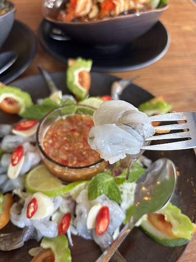 Read moreThe signature crab curry was indeed well made. Very addictive with rice. Though we were quite blown away with the pomelo shrimp salad. Not only was it well presented, the taste was unique too. Large shrimps with fried coconut and onion shavings, crunchy cashew nuts, with juicy sweet pomelo in tamarind sauce, to be wrapped at your own leisure in betel nut leaves. If you want to try the popular local raw shrimp sashimi, this is well made. The shrimps are sweet and fresh, served with aromatic spicy chilli dip and raw veg. Im not a fan of bitter gourd but the complimentary slices makes an...