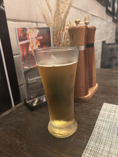 SLOW SERVICE!! No one welcomed us at the front, we had to walk in and grab the menus and seat ourselves⊠which was wild. Usually water is given right away and customers are asked right away if theyâd like anything else to drink, we already looked at them menu and decided everything we wanted to eat and kept looking around for someone to take our order⊠waited minutes until someone finally came around. SUPER UNDERSTAFFED on a Friday night! Singha beer is reasonably priced. The complimentary small avocado/salmon bite was not bad but TINY, the complimentary bread was warm and fresh and came with soft butter and some salt. The Australian Wagyu beef tartare was soft and not too salty and comes with a bit of raw onion and slightly sauced arugula, bread couldâve been a bit more buttered/toasted. My husband and I both got the Black Angus Rib Eye steak, medium rare. The medium rare was good, steak was tender and soft/chewy, my steak had a stringy/tough fat line though so I couldnât finish all the meat. The 3 sauces/salts helped add more flavor profiles. Sides were basic, I got fries w/ ketchup and the mushroom sauce and my husband got the mashed potatoes with peppercorn sauce. Mushroom sauce was not bad, tad salty but had a few thin slices of actual mushroom. We came with a friend, the men got their food first but mine came awhile later. I told them to eat first without me or else their food would have gotten cold. Waited another while for our dirty dishes to be taken away. We couldnât get anyoneâs attention for the check, it was late and we were tired. We figured we had given them our room number before we ordered so we thought they would just charge our room so we got up and left. We had already gone back up to our hotel rooms and 10 min later they must have finally noticed we were gone and someone came knocking on our door to ask for the check, and tip! We were appalled, they donât deserve any! My husband was nice and forgiving enough to give 10%, Overall experience was meh, may or may not try this place again during our stay...