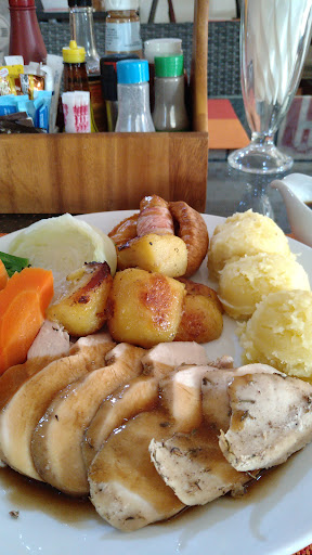 The portions here are huge, and everything tastes amazing. Friday Fish & Chips were perfectly crispy on the outside and full of moist meat on the inside. Seasoned to perfection, and provided with a big lemon wedge, tartar sauce and malt vinegar. Sunday Roast came with a generous portion of meat, absolutely delectable gravy and roasted + mashed potatoes seasoned to a tee. Gratuitous Pig in a Blanket was nothing special but the Yorkshire pudding was baked very well. The staff are all welcoming and have great attention to detail. Will definitely be making this a...