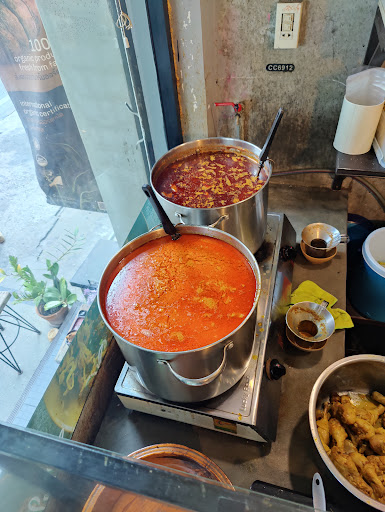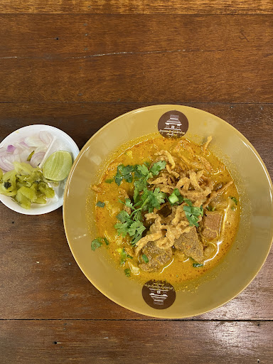 Authentic, mild and thickened curry (chicken, beef) yellow noodles served with lemon, red onions and vinegar cabbage garnishes. The little restaurant also offers other northern favorites such as sweetened pork stew and fried pork over rice served with clear soup.
