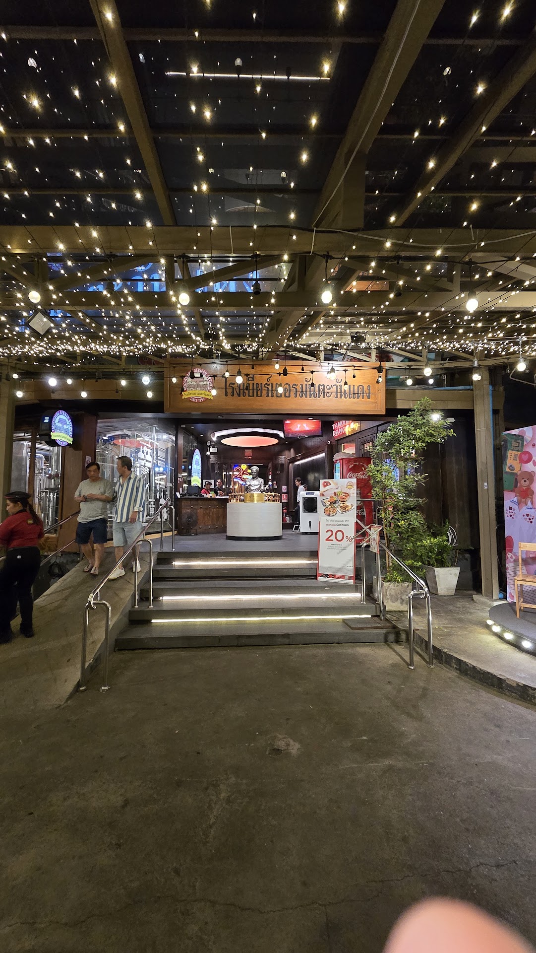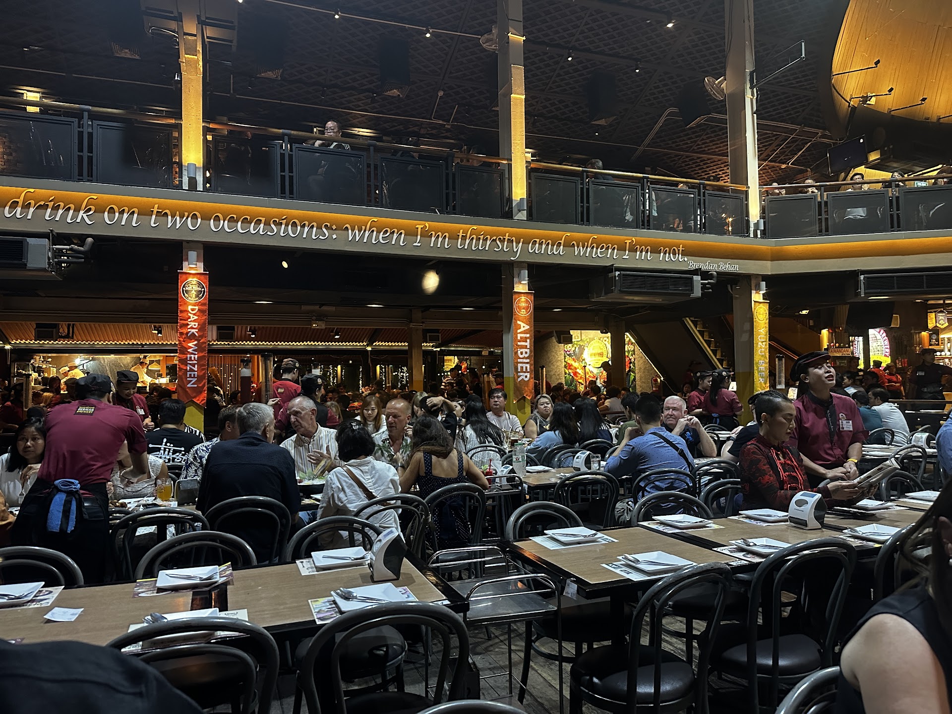 Read moreWell, this restaurant really bumps me with a problem. I don't know what to say about it, on the one hand I found it okay and on the other hand I didn't. The truth is somewhere in the middle. The beer is certainly freshly brewed, but it doesn't taste good. I, as a German who grew up with a grandpa who is a brewer, must say: the beer really doesn't taste good. The beers drunk have nothing to do with the beer as we know it. The food was also rather average, well prepared but a little too tentative. And everything is totally overpriced. I can't say it otherwise, everything is too expensive and made on a show. Speaking of the show, the show in the evening is ok, you can look at it. The artists make a lot of effort and work hard, you can see. Overall, I find this place rather strange. It is a dollar machine. Made for tourists, the concept is also designed. The Sercice really tries, but annoying. You stand on your feet all the time. You hardly have time to choose food and drinks, 3 waiters wait with pulled ballpoint pen. impossible. The beer with 0.5 litre costs 200 baths, a beer test with 3 glasses, and a sip in it. Should 5 people share? Hello, what's the point! That is almost disgusting. With the amount of food, the kitchen, the chef, and the chefs do amazing things, no question. However, food is also designed for tourists. We have a German beer here, a brewery based on the German model ... And then there is sushi? Where are the German Bierhaus dishes? As a guest, I expect the right meal for the beer concept. At almost 15,000 baths for 4 people in the evening for food and drink, the experience was disappointing and leaves a bland aftertaste. Overall, it is also very loud and overcrowded. The main restaurant is like a...