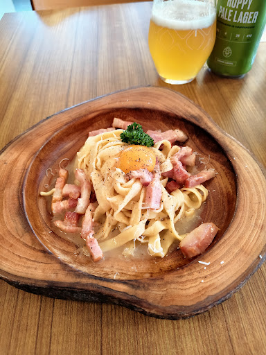 I opted for Fettuccine as my pasta of choice for the Carbonara and the "with cream" option. It was tasty but for me a bit watery and messy: the cream was very liquid-y and splashed all over. The pancetta was good - could have been cooked a smidge more. Think the portion was... average? It came with an egg yolk that you mix in yourself as a nice touch.