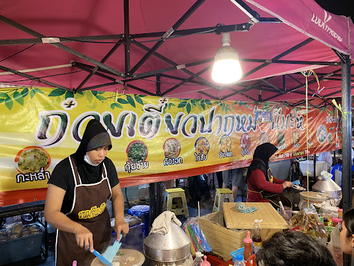 Kua Teaw Phak Morn Nee Ma is one of the cool street food stalls. Welcome yourself to a street-food open kitchen, you sat in front of the cook and placed your order. You can order 8 different flavors of phak mor (ปากหม้อ) - the wrapped noodle with filling and see them being cooked and served right in front of you. 4 of them are served with broth, and another 4 are being served on a plate with sweet sauce (cabbage, chives, bean sprouts, minced chicken, corn, crab stick, vermicelli, string beans, chicken sausage, and mixed sausage) The broth is...