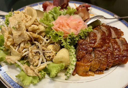 ในส่วนของเมนูพิเศษ เป็ดย่าง นุ่มดี รสชาติพอใช้ได้ หมูแดง เนื้อแห้งไปนิด แต่ดีกว่าพวกหมูแดงตามร้านข้าวหมูแดงทั่วไป แต่กับร้านระดับราคาแบบนี้ ผมว่าไม่สมราคา, สลัดกุ้งถือว่าธรรมดา ไม่มีอะไรน่าสนใจ ไม่ต่างกับสลัดในตลาดทั่วไปนัก มีกุ้งตัวเล็กๆแค่ 2 ตัว, โกยซีหมี่ นับว่าน่าผิดหวังอย่างที่สุด ใช้หมี่กรอบ ไม่ใช่หมี่ผัดแบบจี่กระทะ แถมใส่ถั่วงอกอีก แต่ไก่เส้นนุ่มดี ปรุงรสมาอ่อนๆ, ซุปเป็ด เป็นซุปใส รสชาติจืดเหมือนแทบไม่ได้ปรุงรส เป็ดเปื่อยนุ่มดีมาก มาเป็นส่วนข้อ, เอ็น, ตีน มีฟัก เปื่อยกำลังดี กลิ่นและรสเป็ดไม่เด่น เด่นที่ยาจีน