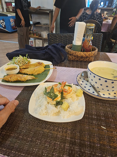 We are very impressed with the service. The lady server waited patiently while we were deciding on our orders & gave good recommendations. She & the other 2 male servers checked in on us if we were comfortable. After they served food, they came back to ask if we are ok with the food. They were very attentive and the whole experience made us feel like VIPs. We loved it so much, we dine at the restaurant everyday. Food was good and the service was 100%. If we ever visit Kamala beach, we will eat there. We didn’t get their names. We only know them as Ni Ma lay...