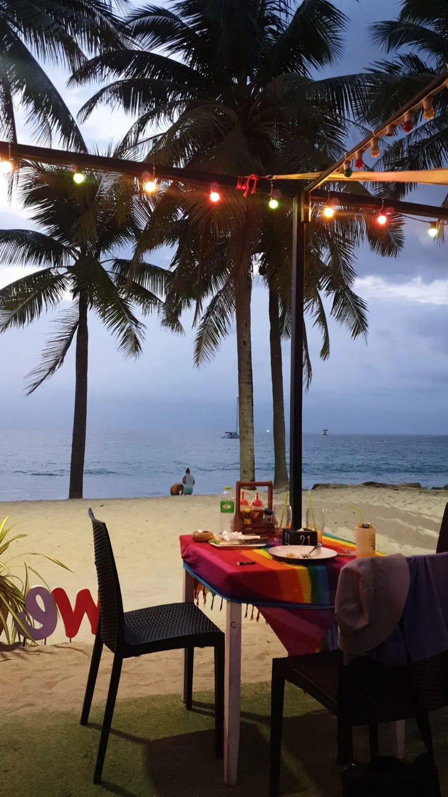 This is a very nice place to have dinner on the beach front. I would recommend here to eat if you want an open menu and you want Excellent customer service. The staff are super nice and go over and beyond to serve you. The menu is quite varied it has western food options, Thai options seafood and everything. This would suit anyone looking to eat western food, local Thai food or seafood. The great thing about the menu is the varied options. It also has vegan options and vegetarian options. This is highly recommended to eat here if staying near or in Kamala. Thank you for such an awesome dinner and great atmosphere and experience. The reason I did not give 5 stars is because I reserve 5 stars where it is deserved. There is nothing wrong with anything here it was perfect. To all tourists or even locals come here you will not be disappointed with you dinner. I paid 1060 Bahts for prawns, squid, salad, spring rolls, 2 glasses of wine, 1 water and 1 Sinagh local beer. We ate as a couple for this price. A noticeable difference in portion size in comparison...