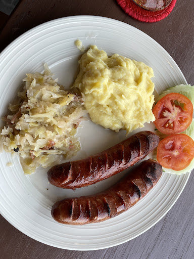 The sauerkraut, finely chopped, tasted more like spoiled white cabbage than traditional sauerkraut. The potato salad also failed to impress.