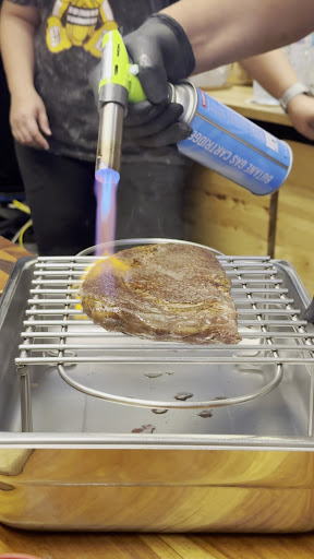 Read more113 Steak, Chef-recommended only Steak table. Verdict: 10/10 Don't trust me too much. I'm pretty kind. Located in Kanchanaburi, opposite the provincial train station, the steak kitchen serves on pre-booking only. Tonight we had 2 250g pieces: Full-blood Australia wagyu Picanha MBS9+ (Equiv. A5) and Full-blood Australia Wagyu Ribeye MBS6/7 (Equiv. A4). Other side dishes are Heirloom tomato, Green salad with homemade dips, triple butter buns with homemade paste, and Inaniwa cold noodles. Everything was freshly cooked in front of us, with little lessons from the chef about the food and its history. A must-visit in...