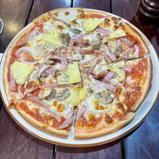 Read moreI have been to this restaurant several times over the years, and it’s very popular with Farang, maybe because they offer pizza and pasta dishes, they also offer Thai food. Their location is also great, right on the high street near all the bars etc. However this time the food seems to have gone downhill. The vegetarian pizza I had was greasy looking, burnt around the outside and there were only 7 very small slices of mushroom, maybe one small whole mushroom, and the mushroom was not even fresh it was a canned mushroom, this is really not good for 230 THB. The salad I had was absolutely drenched in balsamic vinegar, just too much. On a brighter front the cheesecake was delicious and highly recommended. Service was great and everything arrived speedily and the young lady was friendly...