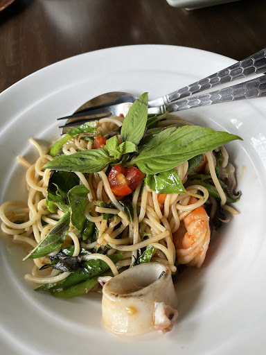 Read moreThe restaurant is in a busy area, and also is a part of a hotel so you can utilize their parking . outside seating is perfect atmosphere for hanging out with friends but the decoration inside of the restaurant is not my cup of tea. Food is reasonable price and simply good. Overall is just okay for me, nothing special that wows me to come back. BTW, spaghetti spicy seafood was very delicious, burger was …. uhm and pumpkin soup was nice. 3 dishes + 2 drinks...