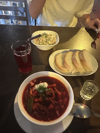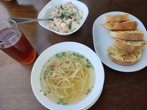 Read moreЕда вкусная, похоже по вкусу, как делаем в России 👍 Брали: квас, оливье, куриный суп, пельмени мясные со сметаной, гренки с чесноком, мороженое клубничное. Муж просил добавку кваса 3 раза, вкус прям как у домашнего кваса. Гренки - супер.