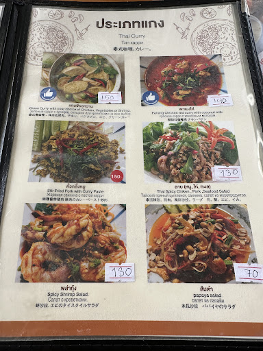 Very traditional Thai food all well prepared, presented and cooked to order. Prices are very reasonable for the food you get especially when compared to the restaurants in the centre.