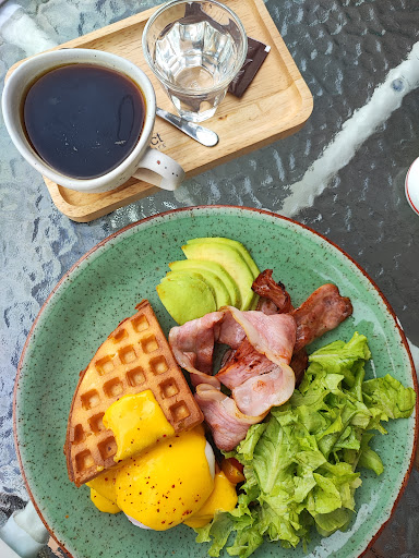 Read moreGot the eggs Benedict waffles...it came with half a waffle that was hard and dry with only one poached egg and hollandaise sauce without much taste, bacon, avocado, and an a salad that didn't look too good. The iced latte just tasted like milk with no espresso in it. Don't trust reviews. There is a sign that offers a free coffee for anyone who leaves a review, only explanation for their 5 star reviews. Also, a man who appeared to be the owner sat at the table next to us on a laptop but didn't engage us. Motioned the waitress to get us the bill when he overheard is whispering that we should get the bill and head out. Also very overpriced for the quantity and quality of food. 320 TB for my meal. Cute interior and waitress was...