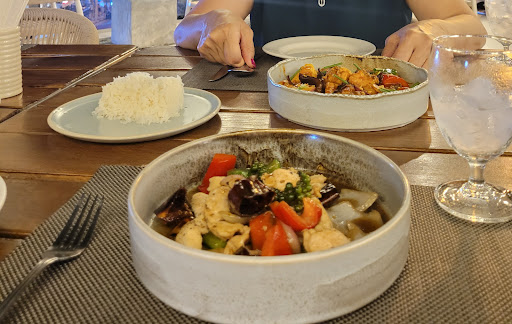 On the other hand, the chicken came with just one vegetable (the green one in the picture) that had an overwhelmingly sharp taste: not spicy, just unpleasant. For the price (around 300 THB), I expected much more. The portion was very small and not filling, with maybe 6–7 tiny pieces of chicken and barely any decent vegetables.