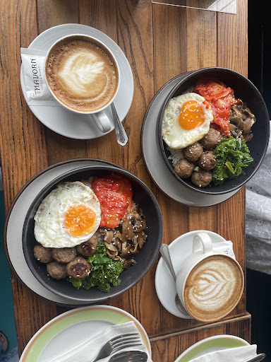 I had such a wonderful experience at this café! The food was beautifully presented and tasted just as good as it looked. The rice bowls with meatballs, sautéed mushrooms, kale, fresh tomato, and perfectly cooked sunny-side-up eggs were hearty and delicious — everything was well-seasoned and balanced.